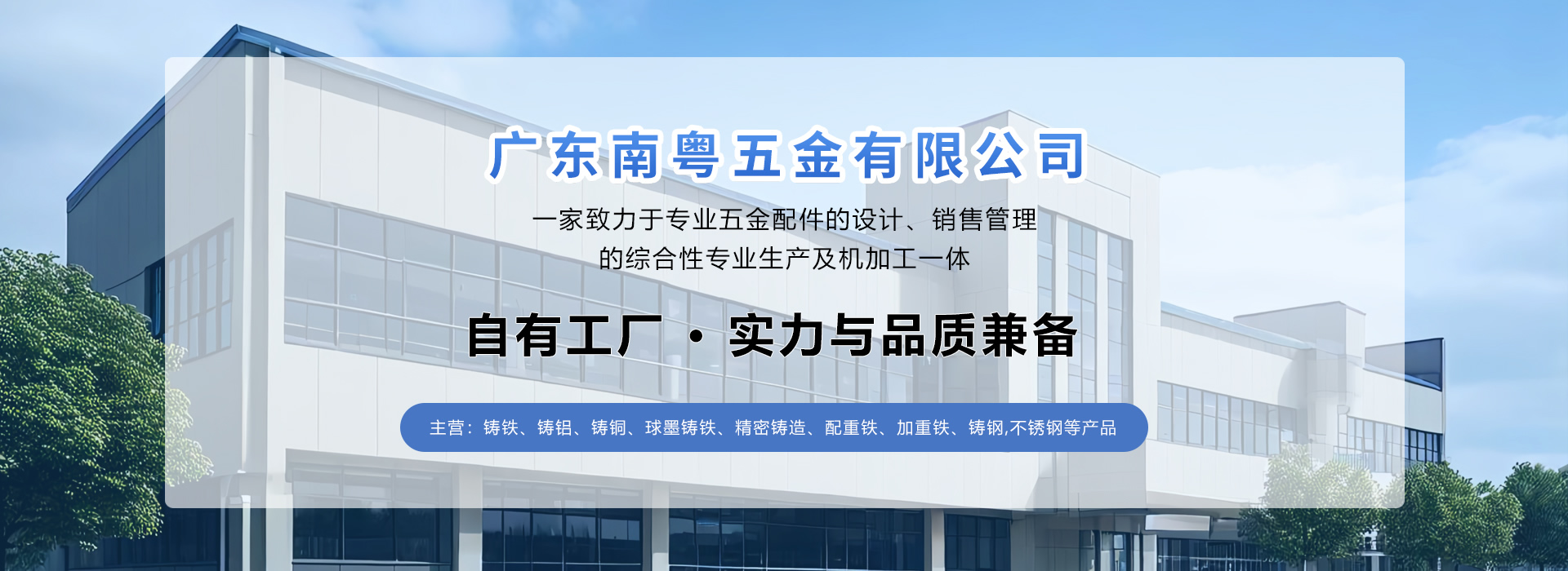 廣東南粵五金有限公司成立于1996年位于富饒的珠江三角洲、東莞市歷史名鎮(zhèn)--清溪鎮(zhèn)。是一家致力于專(zhuān)業(yè)五金配件的設(shè)計(jì)、銷(xiāo)售管理的綜合性專(zhuān)業(yè)生產(chǎn)及機(jī)加工一體: 鑄鐵、鑄鋁、鑄銅、球墨...